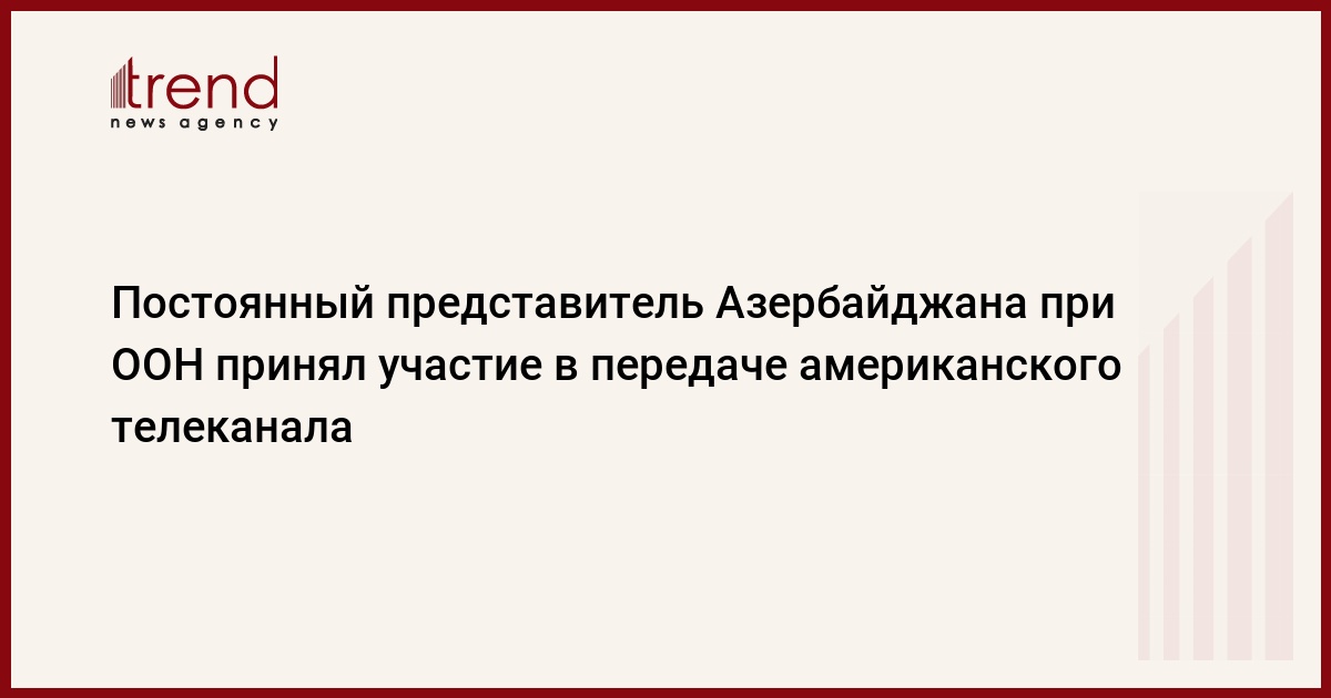 Постоянный представитель Азербайджана при ООН Агшин Мехдиев в понедельник принял участие в передаче "Контакт" с политическим обозревателем Борисом Тенцером на американском телеканале RTN. Об этом сообщает поступивший в Trend пресс-релиз постоянного представительства Азербайджана при ООН.