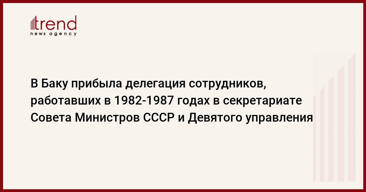 В преддверии Дня памяти Общенационального лидера Гейдара Алиева в Азербайджан прибыла делегация сотрудников, работавших в 1982-1987 годах в секретариате Совета Министров СССР и Девятого управления, говорится в сообщении Фонда Гейдара Алиева.