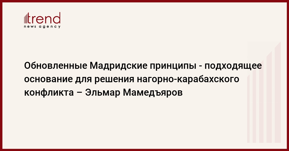 Азербайджан принял обновленные Мадридские принципы и считает их подходящим основанием для решения армяно-азербайджанского нагорно-карабахского конфликта, сказал глава МИД Азербайджана Эльмар Мамедъяров в Риме на встрече со своим итальянским коллегой Франко Фраттини.