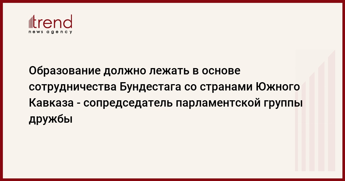 В совместной работе Бундестага со странами Южного Кавказа особое внимание стоит уделить улучшению системы образования в этих странах, а также научно-техническому сотрудничеству, считает сопредседатель группы дружбы со странами Южного Кавказа парламента Германии Виола фон Крамон (Viola von Cramon).