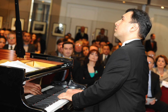 Затем гости ознакомились с фотовыставкой, был также продемонстрирован подготовленный Фондом Гейдара Алиева документальный фильм, посвященный Общенациональному лидеру. На мероприятии выступил заслуженный артист Азербайджана, президентский стипендиант, лауреат международных конкурсов пианист Мурад Гусейнов, исполнивший произведения азербайджанских и европейских композиторов.