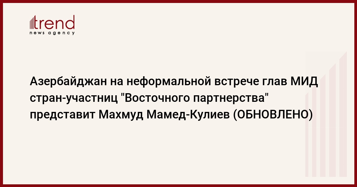 Азербайджан на первой неформальной встрече глав МИД стран-участниц "Восточного партнерства", которая пройдет 24 мая в польском городе Сопот представит заместитель министра иностранных дел Махмуд Мамед-Кулиев, сообщил в понедельник Trend официальный представитель МИД Эльхан Полухов.