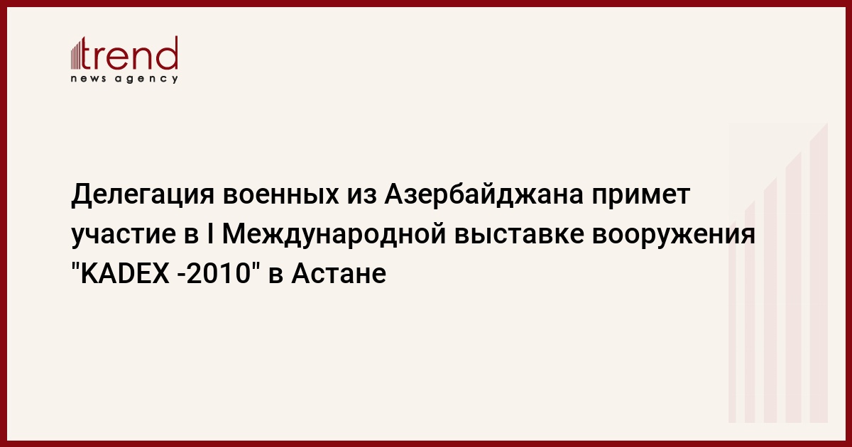 "Сегодня в Астану для участия в I Международной выставке вооружения "KADEX -2010" прибывает делегация сразу из двух ведомств: министерства обороны и министерства оборонной промышленности Азербайджана", - сказал Хазар Аббасов.