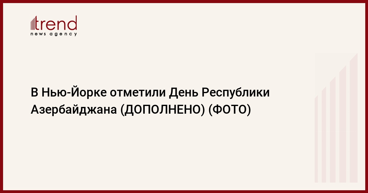 В Нью-Йорке был проведен ряд мероприятий по случаю 92-й годовщины создания Азербайджанской Демократической Республики - Дня Республики, говорится в пресс-релизе постоянного представительства Азербайджана при ООН.