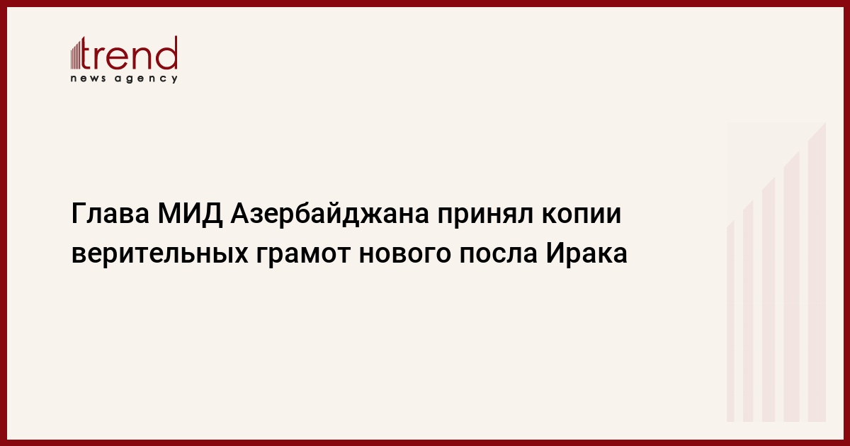 Глава МИД Азербайджана принял копии верительных грамот нового посла Ирака
