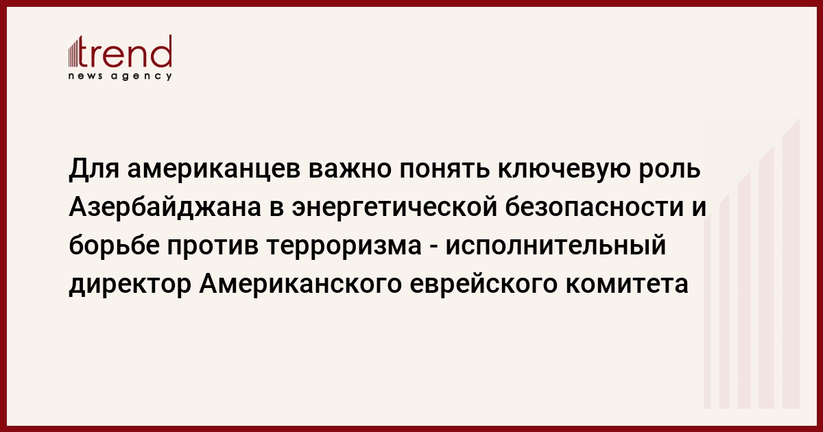 Для американцев важно понять ту ключевую роль, которую сегодня играет Азербайджан в борьбе против терроризма, в энергетической безопасности и военных операциях в Афганистане, сказал исполнительный директор Американского еврейского комитета (АЕК) Дэвид Аллан Харрис по итогам визита в Баку. Его слова приводит сайт АЕК (www.ajc.org) в понедельник.