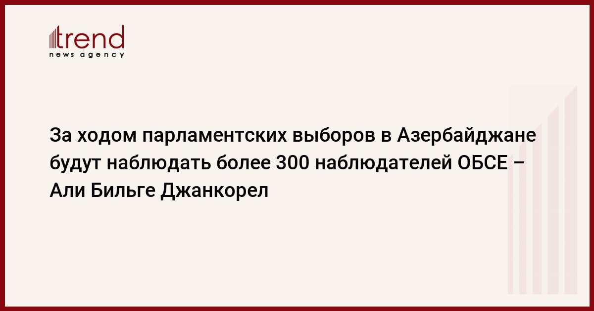 За ходом парламентских выборов в Азербайджане будут наблюдать более 300 наблюдателей ОБСЕ, сказал в четверг журналистам руководитель Бакинского офиса ОБСЕ Али Бильге Джанкорел.