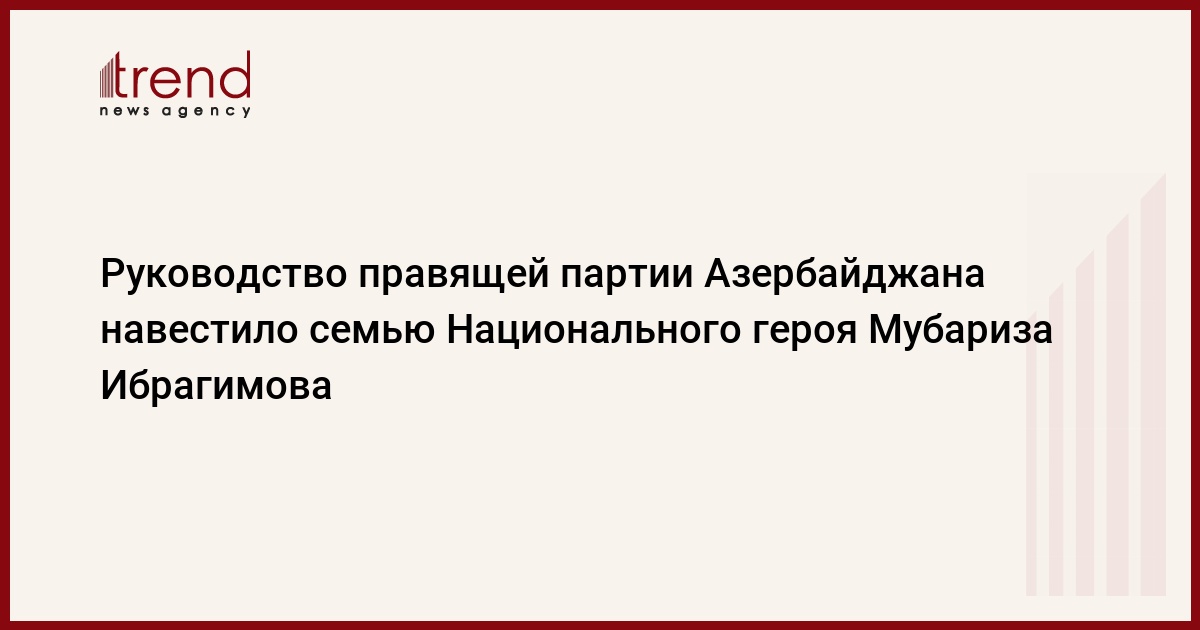 Делегация партии "Ени Азербайджан" (ПЕА) во главе с заместителем председателя, исполнительным секретарем ПЕА Али Ахмедовым, совершив визит в Билясуварский район, встретилась с семьей Национального героя Мубариза Ибрагимова.