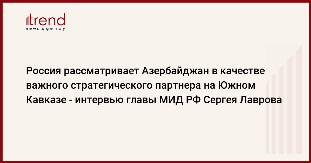 Интервью Trend, АзерТАдж, телеканалов АзТВ и "Хазар" с Министром Иностранных Дел России Сергеем Лавровым в преддверии визита Президента Российской Федерации Дмитрия Медведева в Азербайджан осенью.