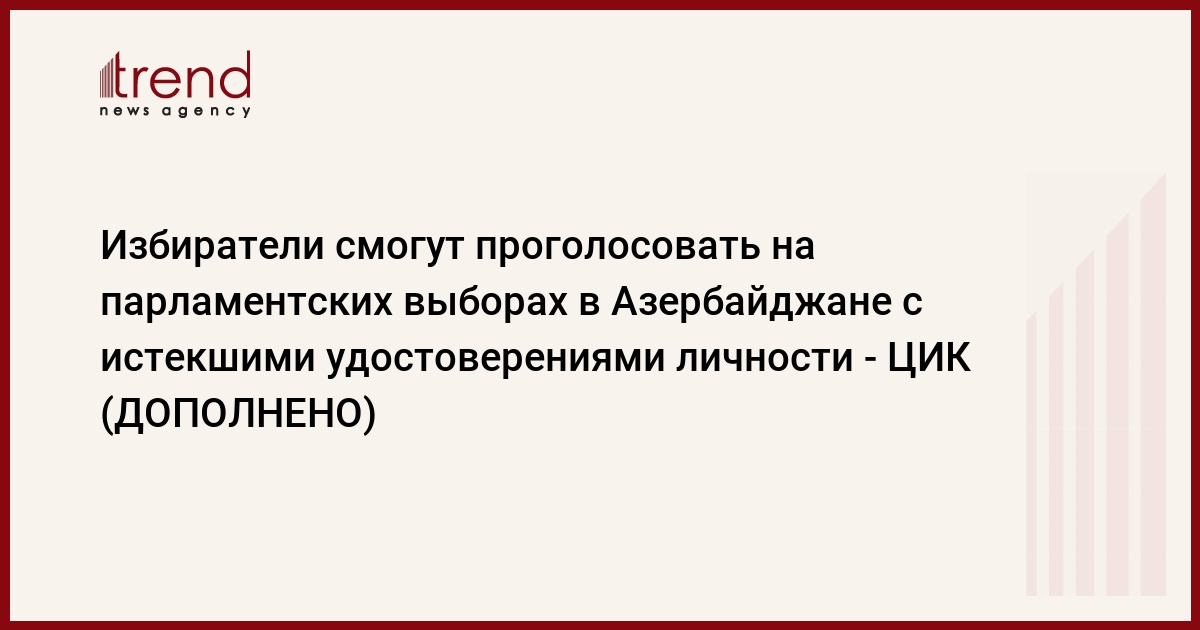 По решению Центральной избирательной комиссии (ЦИК) Азербайджана на парламентских выборах будет возможно голосовать и вести наблюдения за ходом выборов по просроченному удостоверению личности.