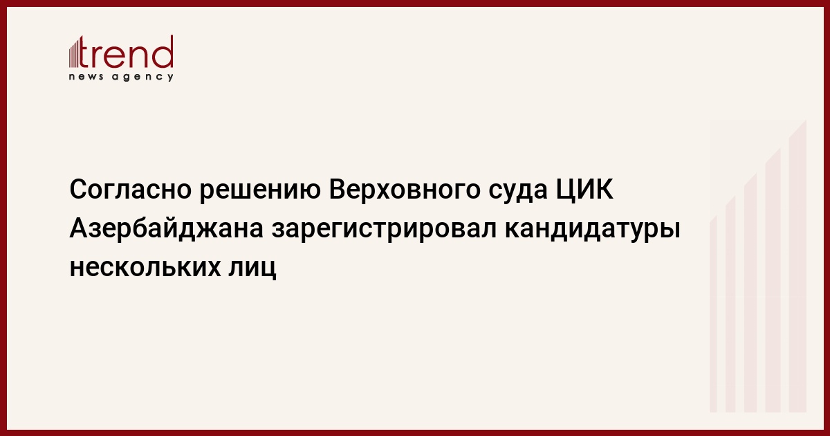 Согласно решению Верховного суда ЦИК Азербайджана зарегистрировал кандидатуры нескольких лиц. Решение об этом было принято в четверг на заседании ЦИК.