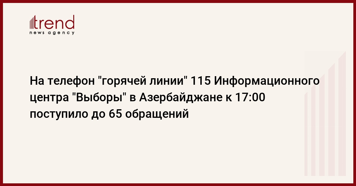 На телефон "горячей линии" 115 Информационного центра "Выборы" к 17:00 поступило до 65 обращений, сказал журналистам руководитель пресс-службы Центризбиркома Азер Сарыев.