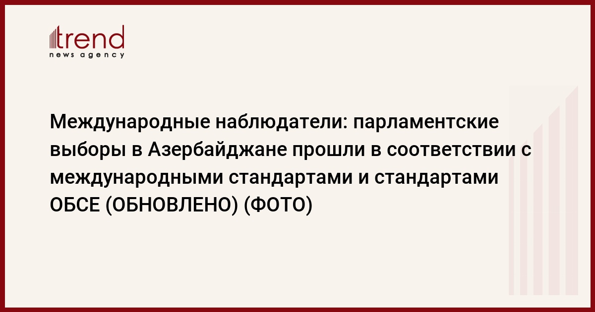 Голосование на парламентских выборах в Азербайджане миссия ПА ОБСЕ оценивает положительно.