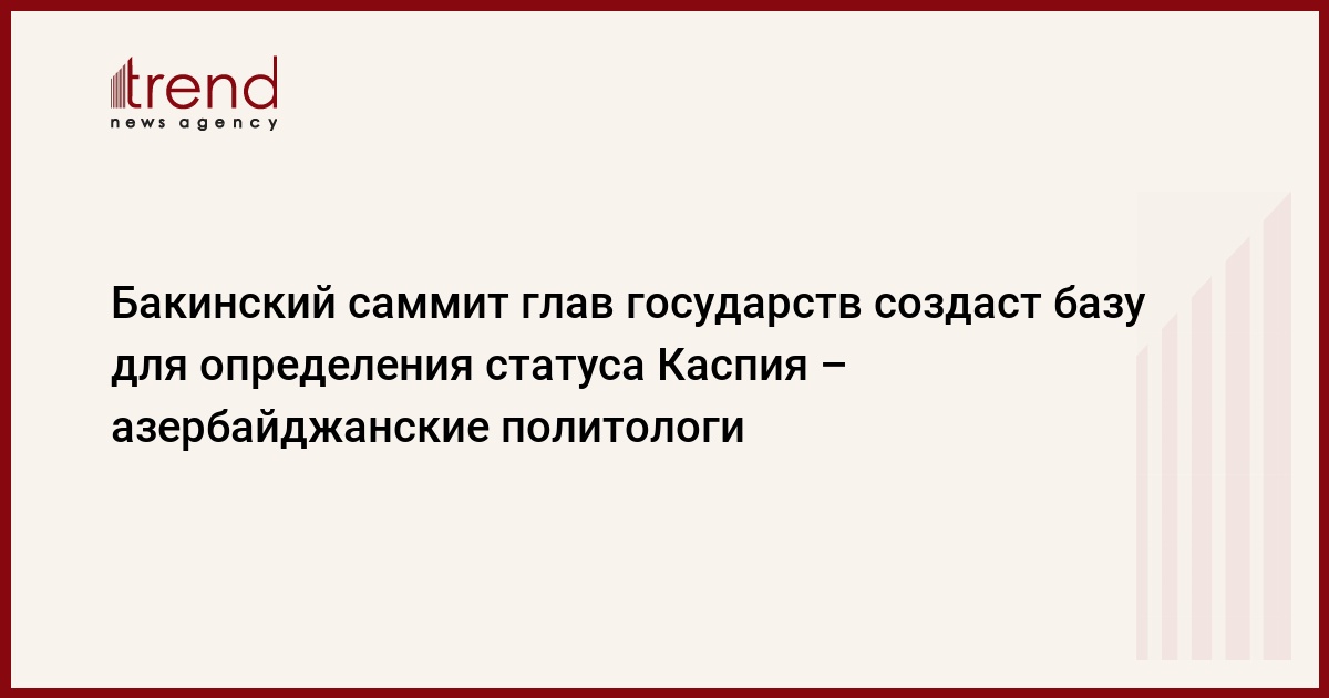 Бакинский саммит глав прикаспийских государств создаст базу для определения статуса Каспия, считают азербайджанские политологи.