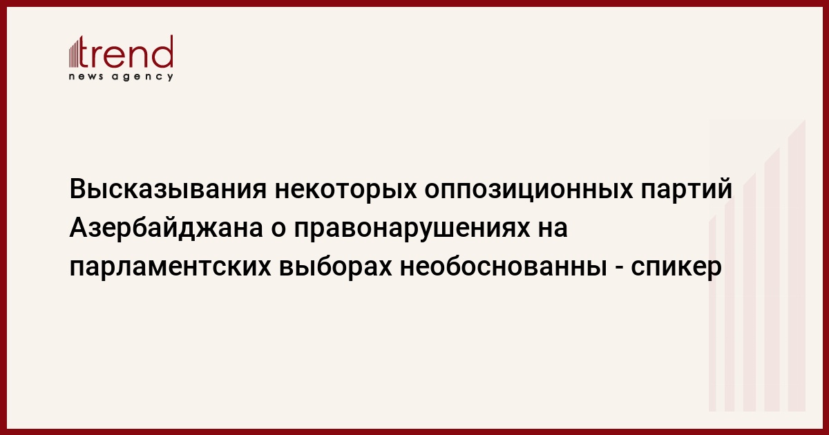 Высказывания некоторых оппозиционных партий Азербайджана о правонарушениях во время парламентских выборов являются необоснованными, считает спикер парламента Азербайджана.