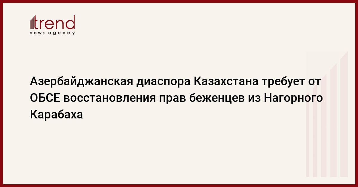 "Союз от имени десяти тысяч беженцев с оккупированных территорий Азербайджана, в настоящее время проживающих в Казахстане, зарегистрировал в секретариате ОБСЕ данное обращение", - сказал Салахов.