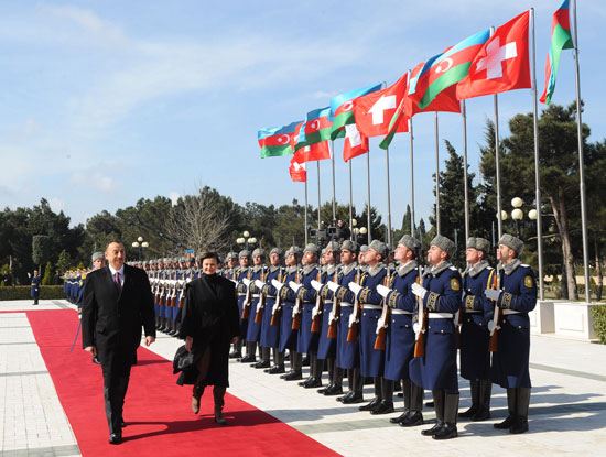 Президент Азербайджана Ильхам Алиев встретил Президента Швейцарии Мишлин Кальми-Рей.