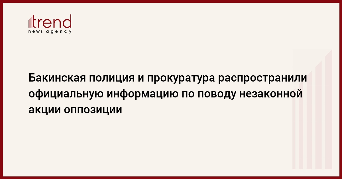Главное управление полиции города Баку и Бакинская городская прокуратура распространили совместную информацию по поводу проведенной оппозицией незаконной акции.