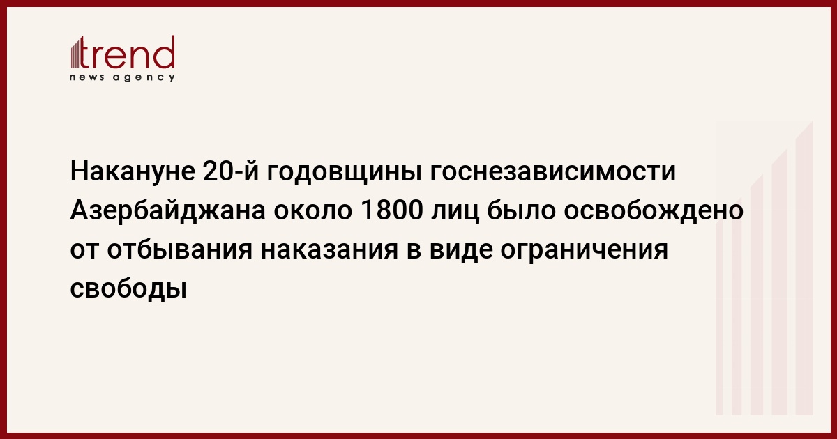 Уверен, что освобождение этих лиц от наказания в канун празднования восстановления государственной независимости Азербайджана окажет положительное влияние на воспитание наших граждан в духе уважения к закону. Также надеюсь, что эти лица, возвратившись к нормальной жизни, внесут посильный вклад в становление гражданского общества.