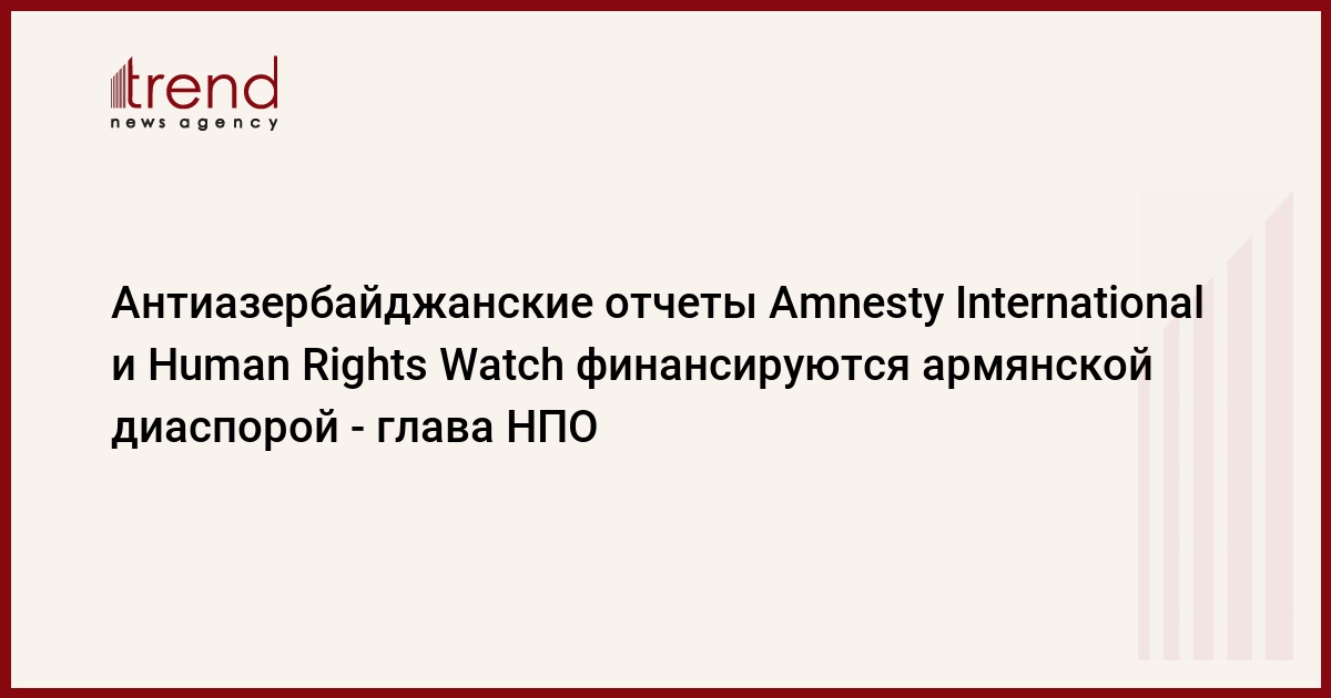 Антиазербайджанские отчеты, подготовленные такими международными организациями как Amnesty International и "Human Rights Watch, готовятся по желанию и при финансировании армянской диаспоры, считает руководитель Общественного объединения "Просвещение во имя богатого Азербайджана" Ирада Алиева.