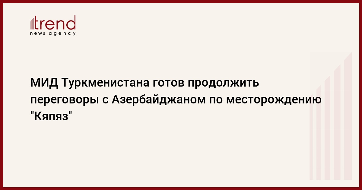 МИД Туркменистана подтвердил готовность продолжить переговорный процесс по рассмотрению вопроса в связи с месторождением "Кяпяз" (в туркменской интерпретации "Сердар"), говорится в сообщении внешнеполитического ведомства страны, распространенном во вторник посольством Туркменистана в Азербайджане.