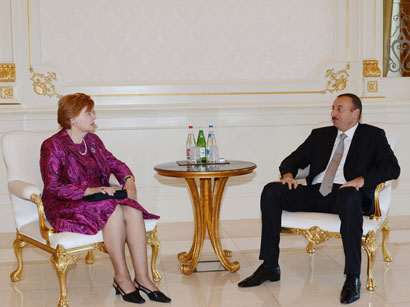 Президент Азербайджана Ильхам Алиев принял в понедельник бывшего Президента Латвии Вайру Вике-Фрейбергу.