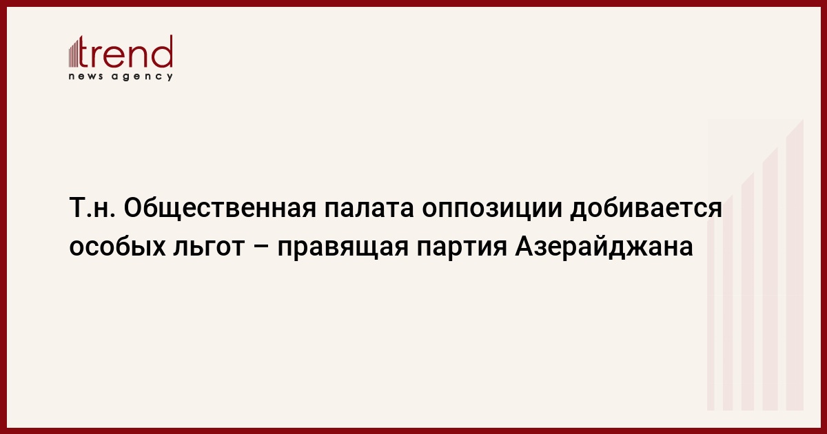 Так называемая Общественная палата (ОП) оппозиции, как правило, всегда отказывается от мест для проведения массовых акций, выделяемых всем партиям исполнительной властью Баку, и хочет провести свою акцию в том месте, которое сама выберет. Таким образом, ОП хочет получить для себя особые преимущества, сказал в четверг в интервью Trend зампредседателя - исполнительный секретарь правящей партии "Ени Азербайджан" (ПЕА) Али Ахмедов.