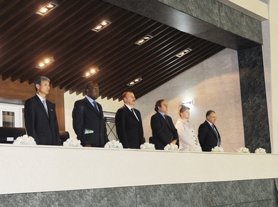 За матчем также наблюдали президент Европейской ассоциации футбольных федераций Мишель Платини, член Исполнительного комитета ФИФА Лидиа Нсекера, руководители международных и мини-футбольных структур.
