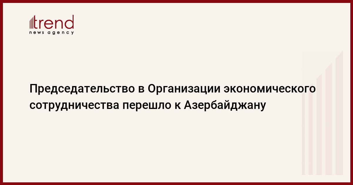Председательство в Организации экономического сотрудничества (ОЭС) перешло от Турции к Азербайджану, заявил во вторник на открытии саммита ОЭС в своем выступлении премьер-министр Турции Редежеп Тайип Эрдоган.