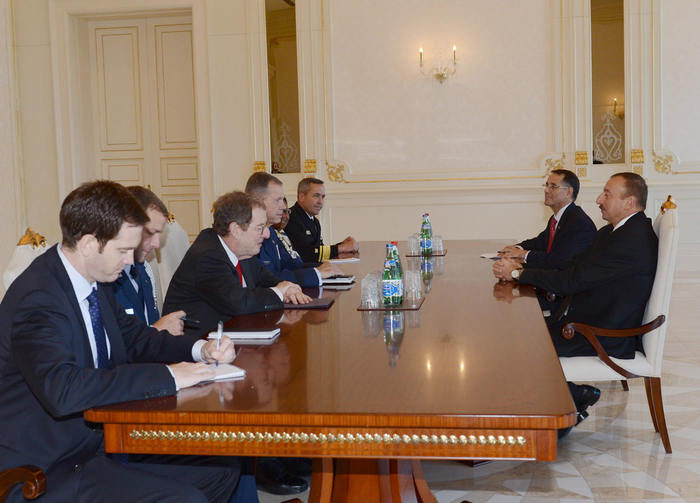 Президент Азербайджана Ильхам Алиев в четверг принял делегацию транспортного командования США во главе с командующим Уильямом Фрейзером.