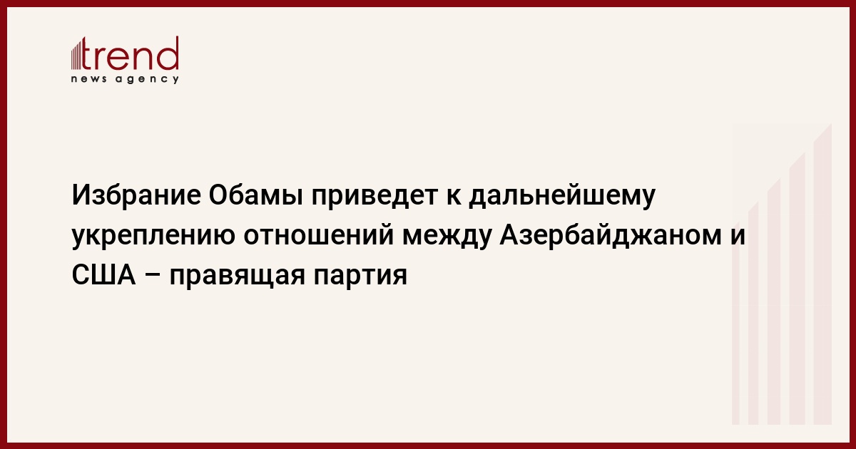 Вторичное избрание Барака Обамы президентом США приведет к дальнейшему укреплению отношений между Азербайджаном и США на основе имеющейся базы сотрудничества, считает заместитель председателя - исполнительный секретарь правящей партии "Ени Азербаджан" (ПЕА) Али Ахмедов.