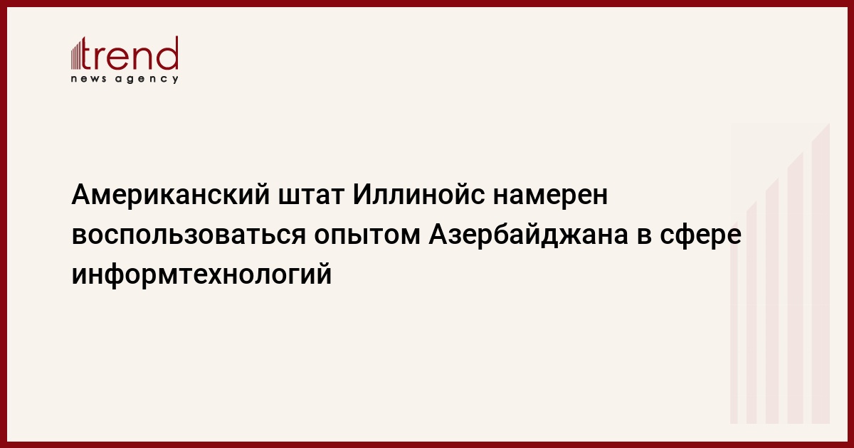 Американский штат Иллинойс в будущем может воспользоваться опытом Азербайджана в сфере информационных технологий, сказал в понедельник на встрече со спикером Милли Меджлиса (парламента) Огтаем Асадовым председатель палаты представителей штата Иллинойс Майкл Жозеф Мадиган, сообщает в понедельник пресс-служба Милли Меджлиса.