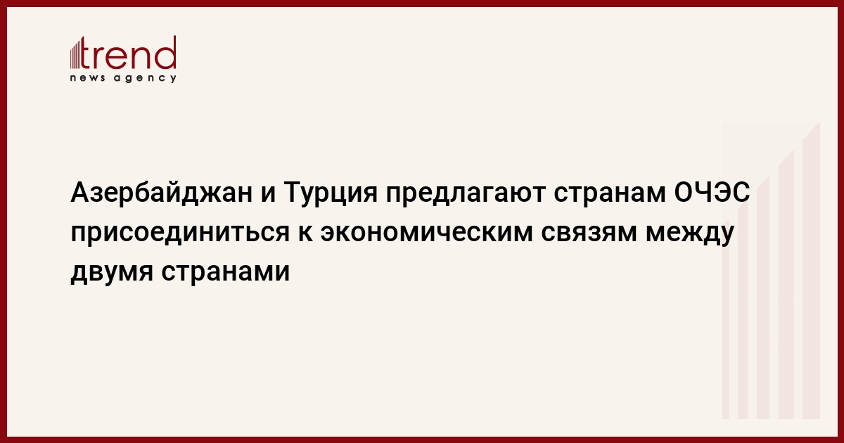 К существующим между Азербайджаном и Турцией экономическим отношениям высокого уровня должны присоединиться и причерноморские страны, сказал руководитель турецкой делегации в Парламентской ассамблее Организации Черноморского экономического сотрудничества (ПАЧЭС) Исмаил Сафи на пресс-конференции в среду, посвященной итогам 40-й сессии Генассамблеи.