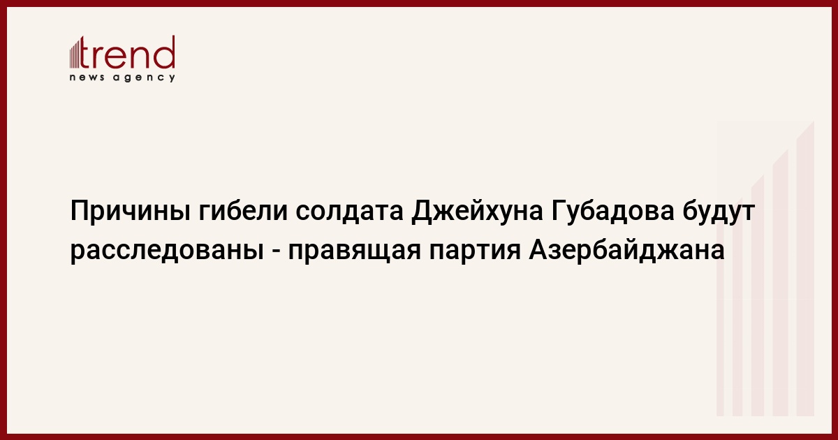 Правящая партия "Ени Азербайджан" (ПЕА) выразила свою позицию в связи с гибелью в воинской части министерства обороны в Дашкесане солдата Джейхуна Губадова.