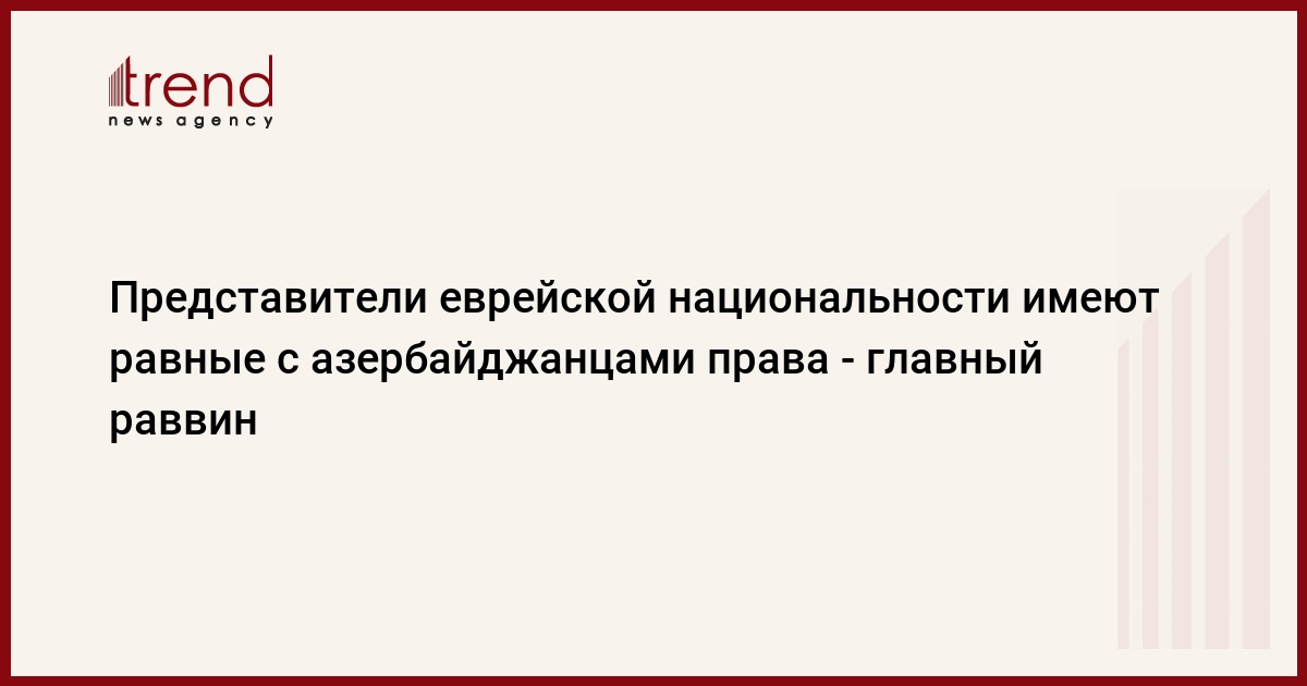Все проживающие в стране представители еврейской национальности имеют равные с азербайджанцами права, которые защищаются властями страны, сказал главный раввин общины европейских евреев Шнеор Сигал (Shneov Segal).