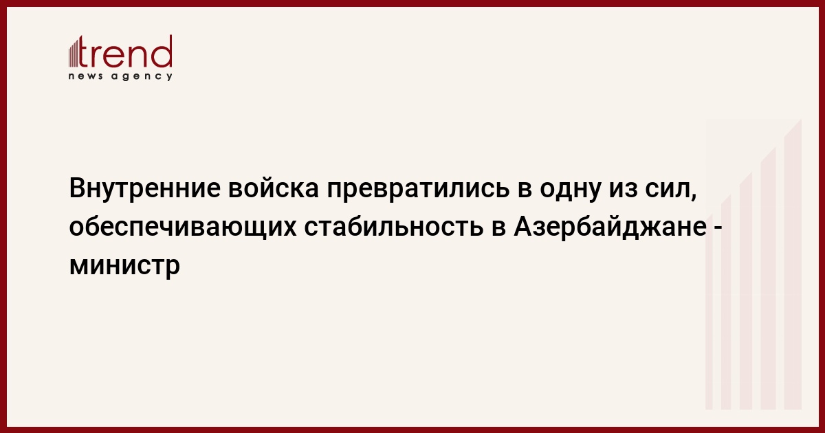 Личный состав Внутренних войск бдительно стоит на страже национальных интересов страны и является одной из основных сил, обеспечивающих стабильность в стране, сказал министр внутренних дел Азербайджана генерал-полковник Рамиль Усубов во вторник на мероприятии, посвященном 21-й годовщине создания Внутренних войск.