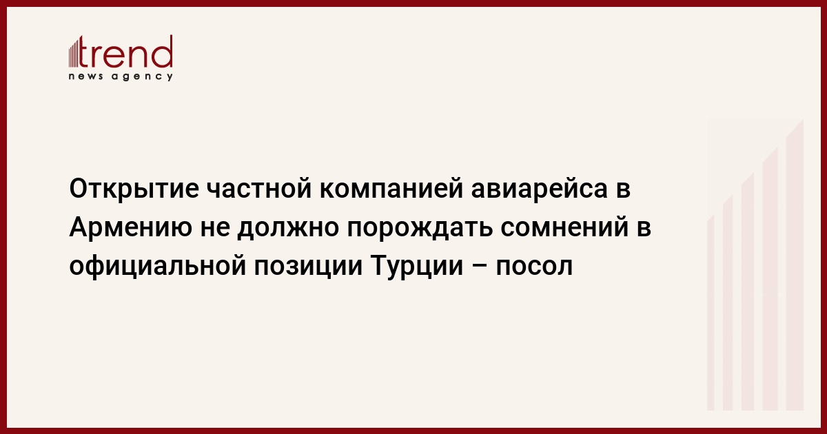Открытие частной компанией авиарейса в Армению не должно порождать сомнения в официальной позиции Турции, сказал в четверг журналистам чрезвычайный и полномочный посол Турции в Азербайджане Исмаил Альпер Джошгун, комментируя вопрос об открытии авиарейса Ван - Ереван.