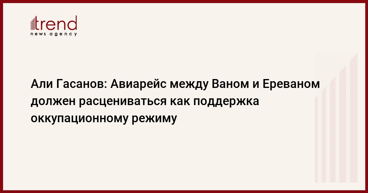 "Сепаратистская деятельность, проведенная ранее в связи с открытием границ между Турцией и Арменией не была поддержана официальными кругами и общественностью Турции. Мы расцениваем авиарейс между Ваном и Ереваном как косвенную поддержку оккупационному режиму, официальным кругам Армении",- сказал Гасанов.