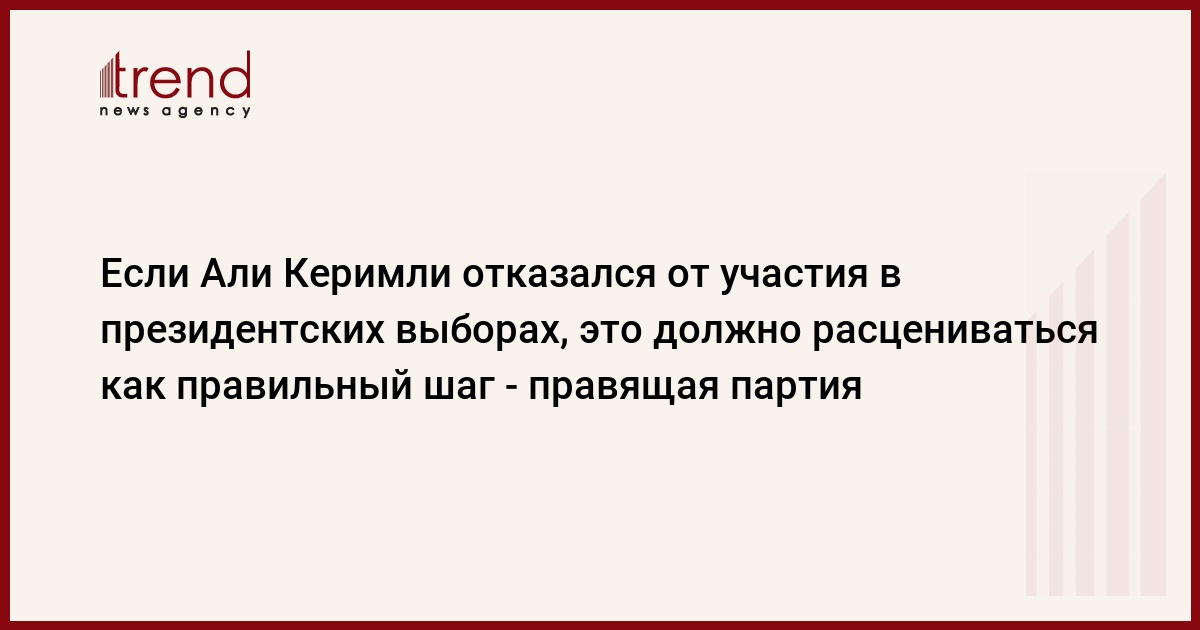 Если Али Керимли отказался от участия в предстоящих президентских выборах, то это должно расцениваться как правильный шаг с его стороны. Об этом сказал в среду журналистам заместитель председателя - исполнительный секретарь правящей партии "Ени Азербайджан" (ПЕА) Али Ахмедов, комментируя слова председателя партии Народного фронта Азербайджана Али Керимли по поводу президентских выборов.