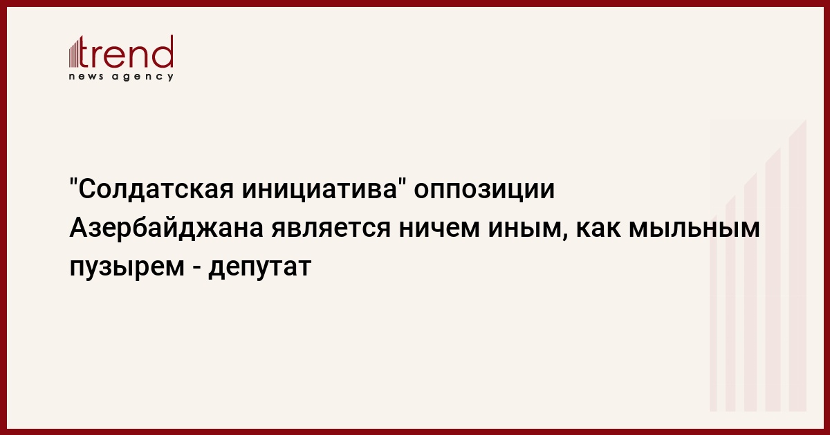 Деструктивная оппозиция старается политизировать каждое происшествие и каждый инцидент в стране, и, злоупотребляя этим, пытается создать искусственное недовольство и нарушить общественную стабильность. Одна из таких попыток - "солдатская инициатива" радикальной оппозиции - на самом деле является ничем иным, как мыльным пузырем. Об этом Trend в субботу сказал заместитель исполнительного секретаря правящей партии "Ени Азербайджан", депутат Мубариз Гурбанлы, комментируя ситуацию, возникшую вокруг ДТП, произошедшего девятого мая в городе Худат Хачмазского района с участием военнослужащего.