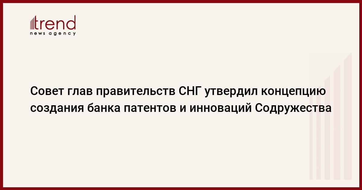 Совет глав правительств СНГ утвердил концепцию создания банка патентов и инноваций Содружества, передает корреспондент Белта.