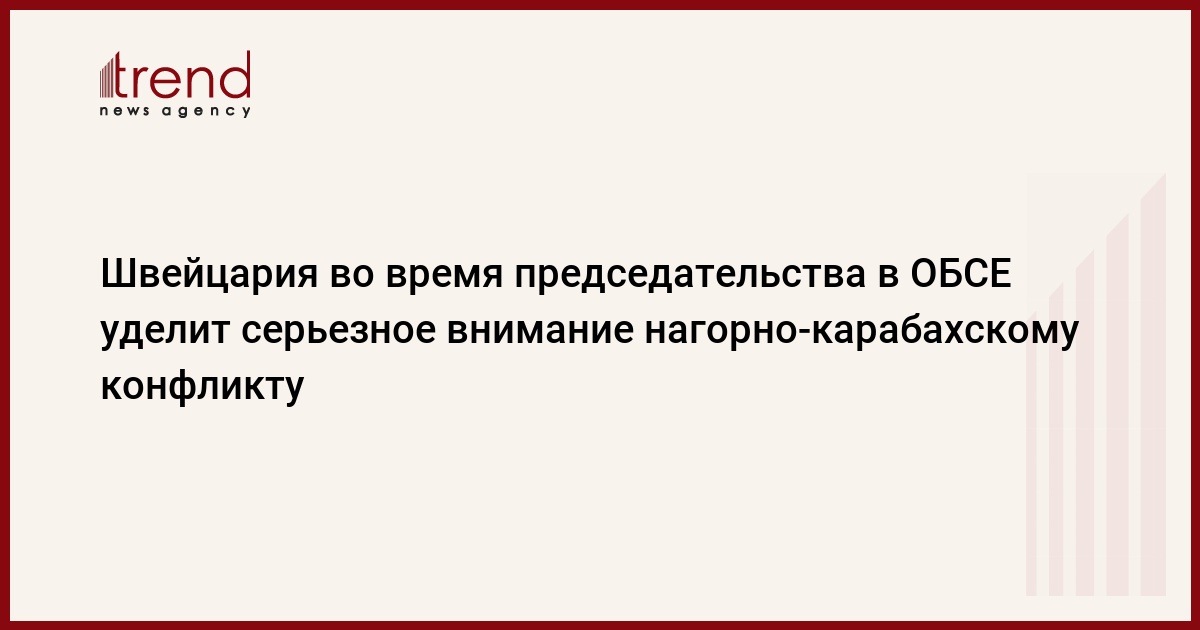 Швейцария во время будущего председательства в ОБСЕ намерена уделить серьезное внимание нагорно-карабахскому конфликту, сказал в понедельник в Баку журналистам председатель верхней палаты парламента Швейцарии Филиппо Ломбарди после встречи с главой МИД Азербайджана Эльмаром Мамедъяровым.