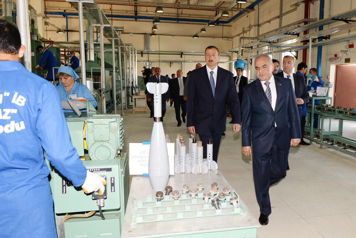 В ходе знакомства с рабочим процессом Президент Ильхам Алиев был проинформирован о том, что в центре осуществляются начинка корпусов 60-миллиметровых мин тротилом путем прессовки и начинка корпусов 82- и 120-миллиметровых мин смесью взрывчатых веществ (тротил и тротил-динитронафталин) путем шнековки. Центр оснащен необходимым производственным и контрольным оборудованием. На производственном участке установлены четыре линии. Для выполнения вспомогательной работы, работы по подготовке и начинке созданы участки, обеспечивающие безопасные условия работы. На первой линии созданы технологические рабочие участки для разборки и подготовки к начинке 60-миллиметровых мин, на второй линии - для разборки и подготовки к начинке 82- и 120-миллиметровых мин, на третьей конвейерной линии - для сборки снарядов калибра 120 миллиметров, а на четвертой - калибра 60 и 82 миллиметра.