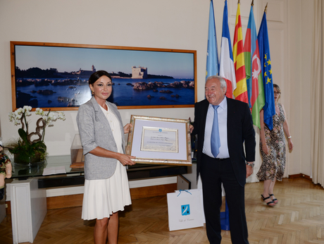 Бернар Брошан вручил Мехрибан Алиевой диплом почетного гражданина города Канны.