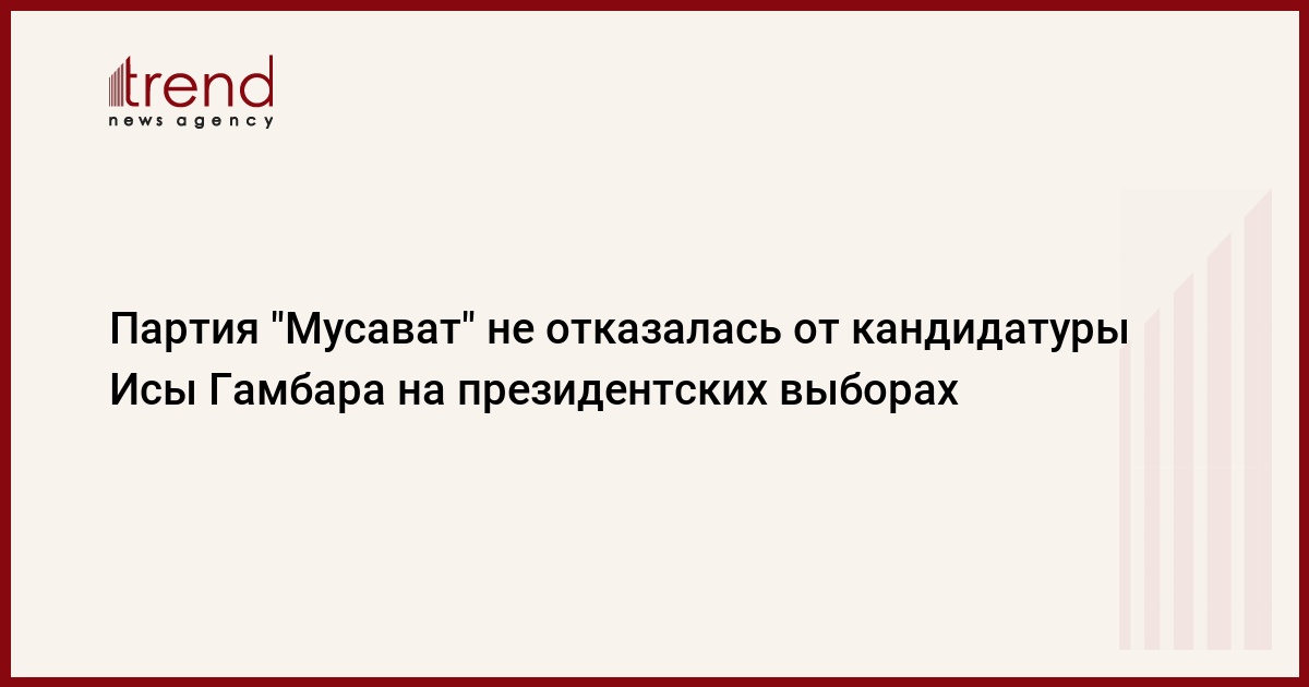 С учетом возможности какой-либо форс-мажорной ситуации, а также принимая во внимание решение Меджлиса партии "Мусават", структура не отказывается от кандидатуры Исы Гамбара на президентских выборах. Об этом сообщил Trend в пятницу руководитель Исполнительного аппарата партии Ариф Гаджилы.