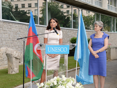 По ее словам, традиция создания мемориальных памятников в Азербайджане восходит к древности, и большинство таких памятников имеют историческую и художественную ценность. "Конечно же, они все являются частичкой нашего древнего и богатого культурного наследия. Я хотела бы выразить глубокую признательность генеральному директору ЮНЕСКО и Секретариату ЮНЕСКО за размещение этих двух прекрасных изваяний здесь - в саду, в штаб-квартире ЮНЕСКО", - сказала первая леди Азербайджана.