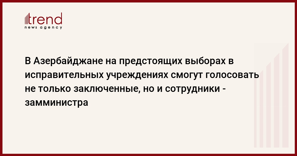 В Азербайджане на предстоящих выборах смогут проголосовать не только заключенные, содержащиеся в исправительных учреждениях, но также сотрудники и военнослужащие, работающие в этих учреждениях, сказал во вторник заместитель министра юстиции Азер Джафаров в Центральной избирательной комиссии (ЦИК), выступая на специализированных курсах по избирательному праву для председателей окружных избирательных комиссий (ОИК) на тему: "Роль и направления деятельности органов юстиции (органов государственной регистрации актов гражданского состояния, нотариусов, Государственного реестра правовых актов, следственных изоляторов и исправительных учреждений) в избирательном процессе".