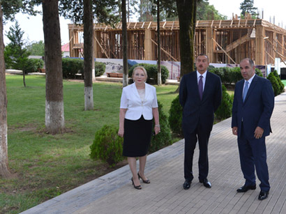 Президент Азербайджана Ильхам Алиев в среду ознакомился с ходом строительства Центра Гейдара Алиева в Огузе.
