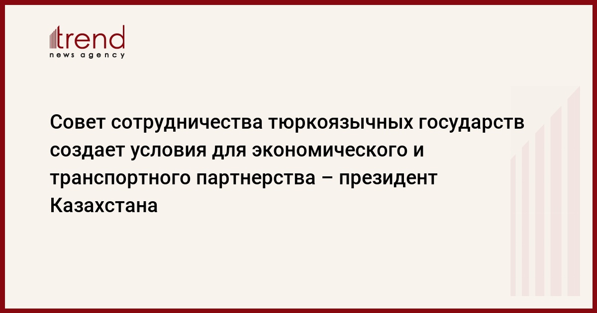 На сегодняшний день Совет сотрудничества тюркоязычных государств (ССТГ) становится известной организацией и создает возможность для экономического и транспортного сотрудничества, сказал президент Казахстана Нурсултан Назарбаев, выступая на III саммите Совета в Габале в пятницу.