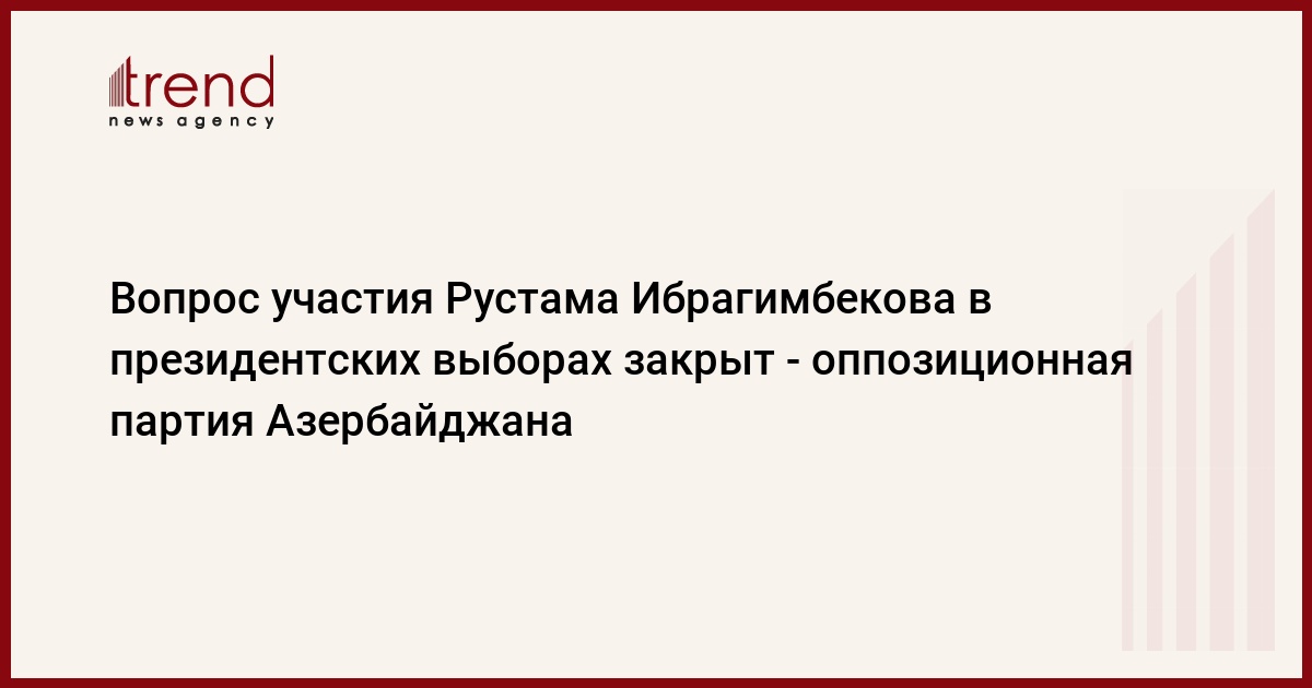 Вопрос по поводу приезда Рустама Ибрагимбекова в Азербайджан и его участия в президентских выборах в качестве кандидата закрыт, сообщил Trend в понедельник генсек Партии национальной независимости Азербайджана (ПННА) Арзуман Ализаде.